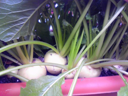 こんにちは~こうめまま★のテラス菜園へようこそ 今シーズン、イイ感じ♪なあごおち蕪。 ギュウギュウ 間引きがいい加減だったのでギュウギュウ状態ですが次々と大きくなり、少しずつ収獲しています(@´゚艸`)ウフウフ 収獲 いつも1回の収獲は3個( ̄m ̄*)この量がちょうど夫婦2人にはイイんです♪見て~真ん中のなんて綺麗な形で美味しそうでしょう?(自画自賛(笑))このあごおち蕪、もう種がなくなり、今回の栽培で最後になります。 頂き物の種でしたが、柔らかくて甘みがあり、とても美味しい蕪です。長崎県佐世保市の「市川種苗店」というお店で扱っていて、ネットでも買えるみたいなので頼んじゃおうかなぁ~(。-`ω´-)ンー(現在、入荷待ち状態ですが)と悩んでます。 コンニャク2年子種芋5球 最後まで読んでいただきありがとうございます。ランキングに参加していますポチっとクリックして下さると嬉しいですにほんブログ村人気ブログランキングへ