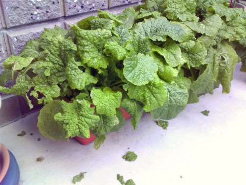 こんにちは~こうめまま★のテラス菜園へようこそ 今朝、テラスを見るとなんか変。 菜の花 あれ?(´・д・`)菜の花の周りに葉っぱが散らばってる? ズーム 葉っぱが食べられてる!?これは・・・ヒヨドリの仕業ね~ヾ(*`⌒´*)ノヒヨドリさん、スイスチャードは飽きたのか菜の花にターゲットを変えた模様 防御 防虫ネットが1枚余っていたのですぐに防御まだ生長途中の菜の花だもの。ここで丸坊主になる訳にはいきません!立派な菜の花を収穫したいし(o´・ω-)b ネッ♪スイスチャードの葉が食べられた時「食べる物がないのかもと思うと少し可哀想」と書きましたがまだ1度も収穫していない野菜が食べられるとちょっと腹が立つ人間ってほんと勝手な生き物ですね・・・| 柱 |ヽ(-´ω`-。)反省 九州限定!鹿児島発!鹿児島県・指宿から収穫された菜の花が入ってます!なたね油使用の美味し... 最後まで読んでいただきありがとうございます。ランキングに参加していますポチっとクリックして下さると嬉しいですにほんブログ村人気ブログランキングへ