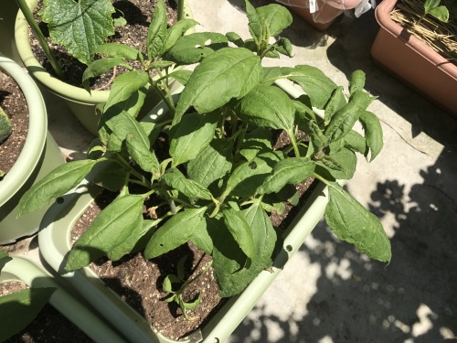 こんにちは~こうめまま★のテラス菜園へようこそペピーノの花が咲きましたお花今日の水やり時に花が咲いているのを発見!紫色と白色のツートンカラーが可愛らしいナスにも似た(いや、ジャガイモの方が似てる?)お花ですペピーノは今まで2度ほど(3度かも)育てたことがあるのですがいずれも花が咲くところまでで結実はしていません(*´U_U*)シュン今年こそは結実してほしいと今日もせっせとトマトトーンを噴射!さてさて、トマトトーンの力を借りて無事結実できるかしら?結果が楽しみです(^_-)-☆ 最後まで読んでいただきありがとうございます。ランキングに参加していますぽちっとクリックしてくださるとうれしいですにほんブログ村人気ブログランキング