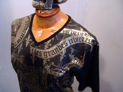 注目の1枚・・・ Yasuyuki Ishii Gothic Vネック ハーフスリーブT-shirt (素材:ポリエステル100% ¥15000) フロントは天国!バックは地獄のイメージを持つゴシック調の世界観で表現した一品!! エステル独特の光沢感はハデハデになりすぎず品のある仕上がりを見せてくれる。一枚のTee shirtにこれだけの徹底した感性を打ち出してこれるのは Yasuyuki Ishiiブランドならでは!! http://kstakeya-syrup.com/