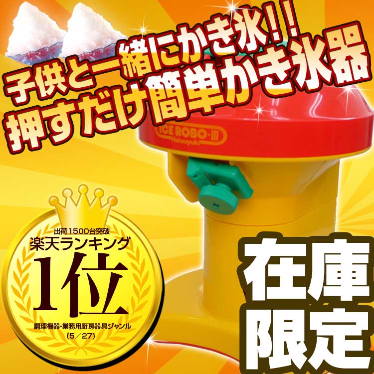 家庭で簡単!ふわふわかき氷♪ふわふわのカキ氷が簡単にできる!初雪 アイスロボIII メーカー希望小売価格 12,000円 (税込 12,960 円) ↓ ↓ ↓ 価格 4,860円 (税込 5,248 円) 取り扱いショップ:厨房卸問屋 名調
