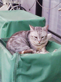 なんか、自転車のかごの上とか、バイクのかごの上が好きみたいで。。。