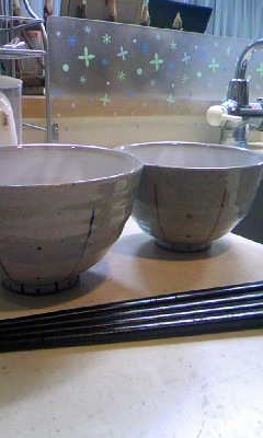 夫婦茶碗など買ってみました。めちゃめちゃ軽~い「有田焼」。「普段使いのものはイイものを使いましょう」って、何かの雑誌で読んだので、ちょっと張り込んで…。(と言っても、せんえんくらいやっちゅうに)今年は父さんに優しく…地球にも優しく…できるかなぁぁぁぁ(* ̄m ̄)