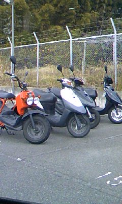 最近、課長の友達にバイトに来てもらってる。父さんがキャラバンに乗せて現場へ。ドナドナドーナー♪って感じで…ぷぷっ。うちに集合するバイト君たちのバイクです。さすがはみんな体育会系。よー動いてくれて助かってます。
