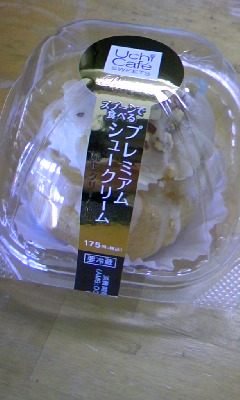 仲良し姪っ子ちゃんが絶賛していたシュークリーム。コンビニだからと今や侮れない…そんな味なのだ。この姪っ子ちゃん、なかなかのグルメなので舌は確かである。実はもうハマっていて、ちょっと頑張った日は自分にご褒美♪として買う。今日は…こないだ、父さんと課長がいなくても一人で家におれたから(笑)(小学生かっっ!)ご褒美シュークリームがこちら~♪普通のシュークリームが105円、これが175円。だからちょっと贅沢気分で。クリームが何とも言えず美味!!ちなみにローチョンです。りらっくまでお世話になったのに、またまたお世話になってます。もちろん、ポイントカード作ってます。そんな姪っ子ちゃんは今、ミッフィーちゃんシールを集めている(笑)また美味しい情報教えてねーーー★