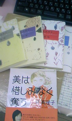こないだ注文した林真理子氏の本。あちこち本屋さんでゆっくり選ぶのも楽しいけど、時間がないときは、やっぱり「アマゾン」が早いねー。金曜にネットで注文して今日届きました。すごいぞ、アマゾン!さ、今日からマリコワールドな日々です。