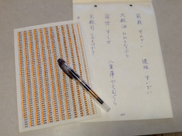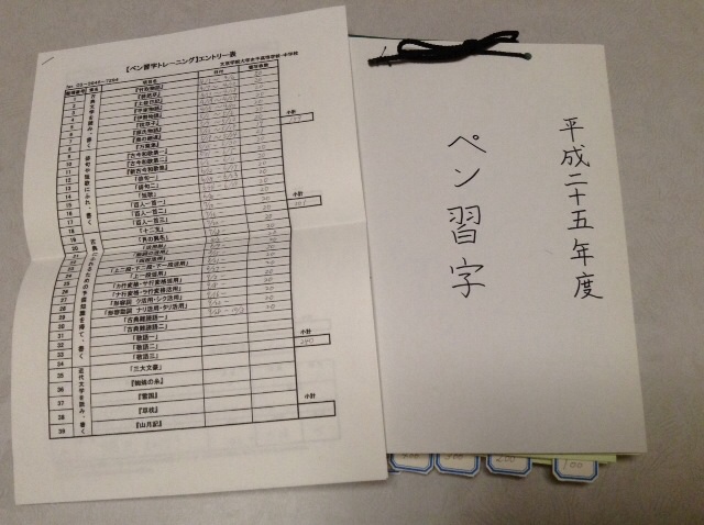 提出様式は、ホームページに書いてあります。・表紙と裏表紙の厚紙 ・600枚を綴じる紐・100枚毎のタグシールこれらは、家にあるもので間に合わせました。後は、レターパック350です。600枚目を仕上げたのが週末で、郵便局があいていません。月曜日は仕事で郵便局に行けず、火曜日にようやく郵便局に行き、レターパックを買い、その場で600枚の用紙を封入、そして投函しました。その日、私は初めてレターパックを買いました。レターパックには厚さ3cmという制限があるのですが、600枚分のペン習字用紙がレターパックで送られてきたので、入ると思っていました。局内でなんとか封をして窓口に出すと、綴じた紐の結び目の部分がネックになり、窓口の定規を通過しなかったのです。(これから提出するみなさんは、紐を平べったく結ぶようにしましょう。)でも、局員さんが親切で、外の郵便ポストに投函できたら大丈夫です、と密かにアドバイスをいただきました。そして無事投函。ということで、これから600枚を提出する方は、・B5の厚紙・(なるべく平べったい)綴じる紐・タグシール6枚・レターパック350を準備して置くと、書き上げたその日に、ポストに投函できます!