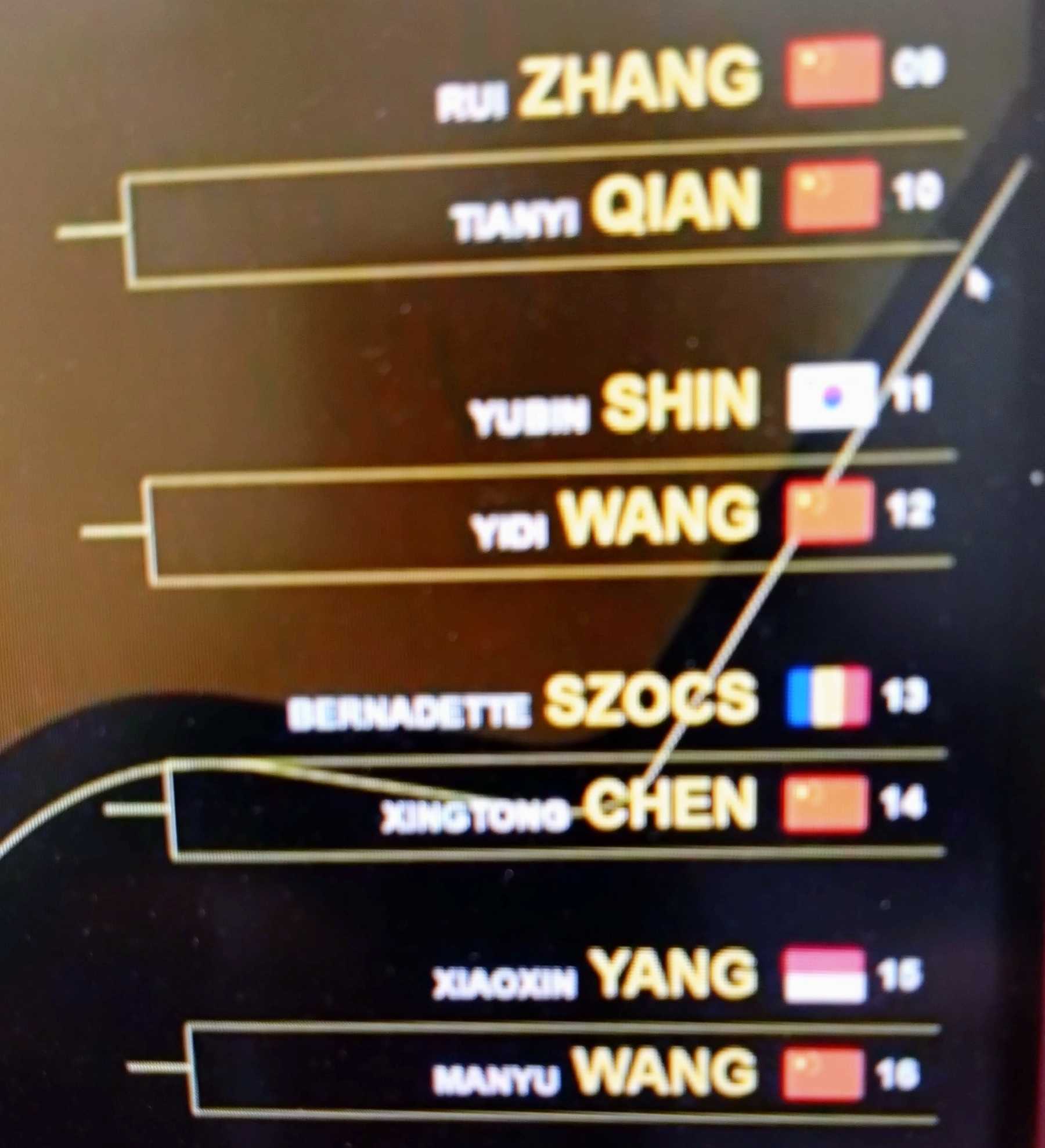 張本選手は、世界ランク1位の孫穎莎選手と対戦です。