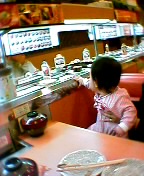 あーちゃんも回転寿司をみたり