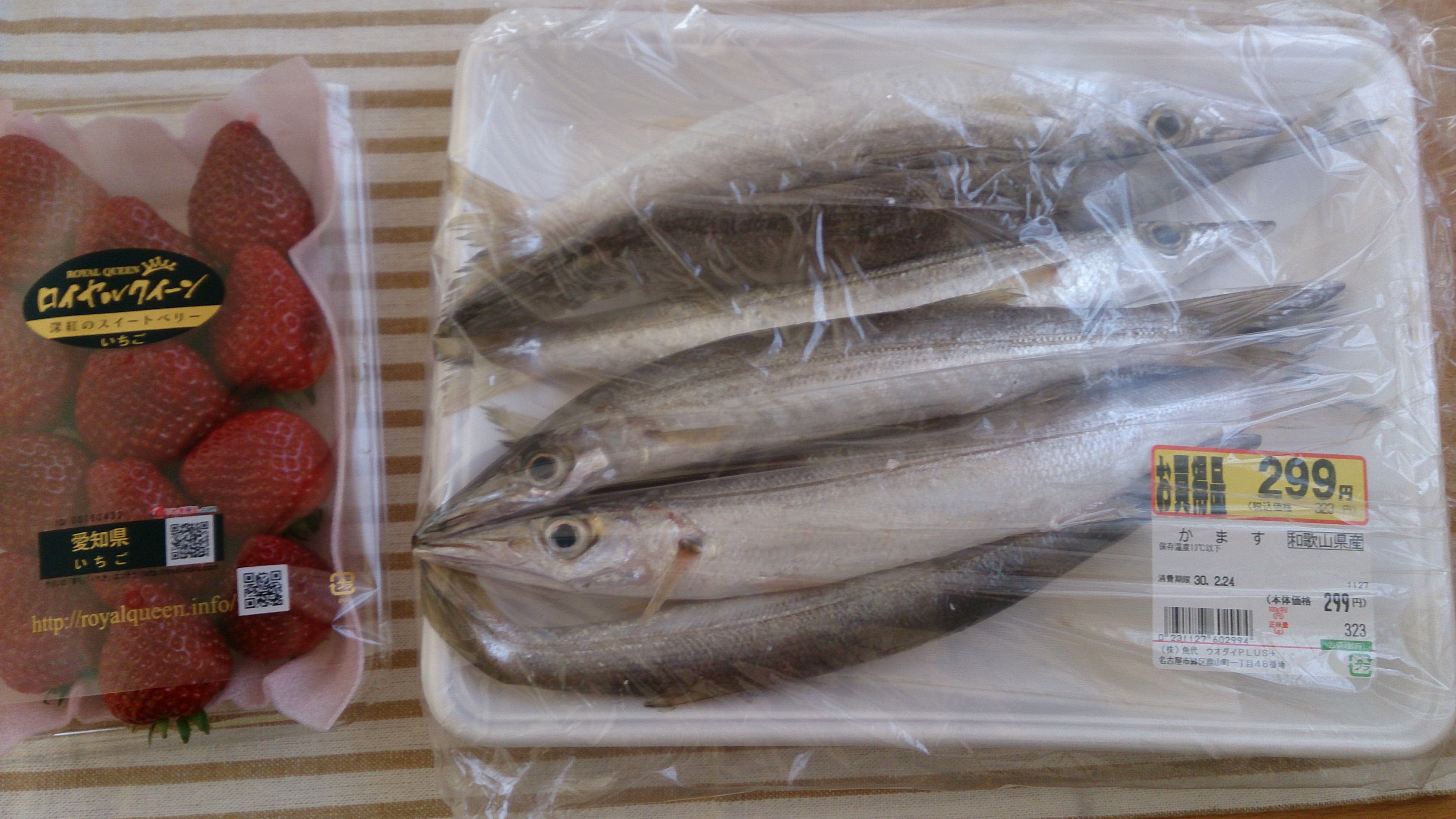 カマスは7匹も入ってました。イチゴも1パック299円。