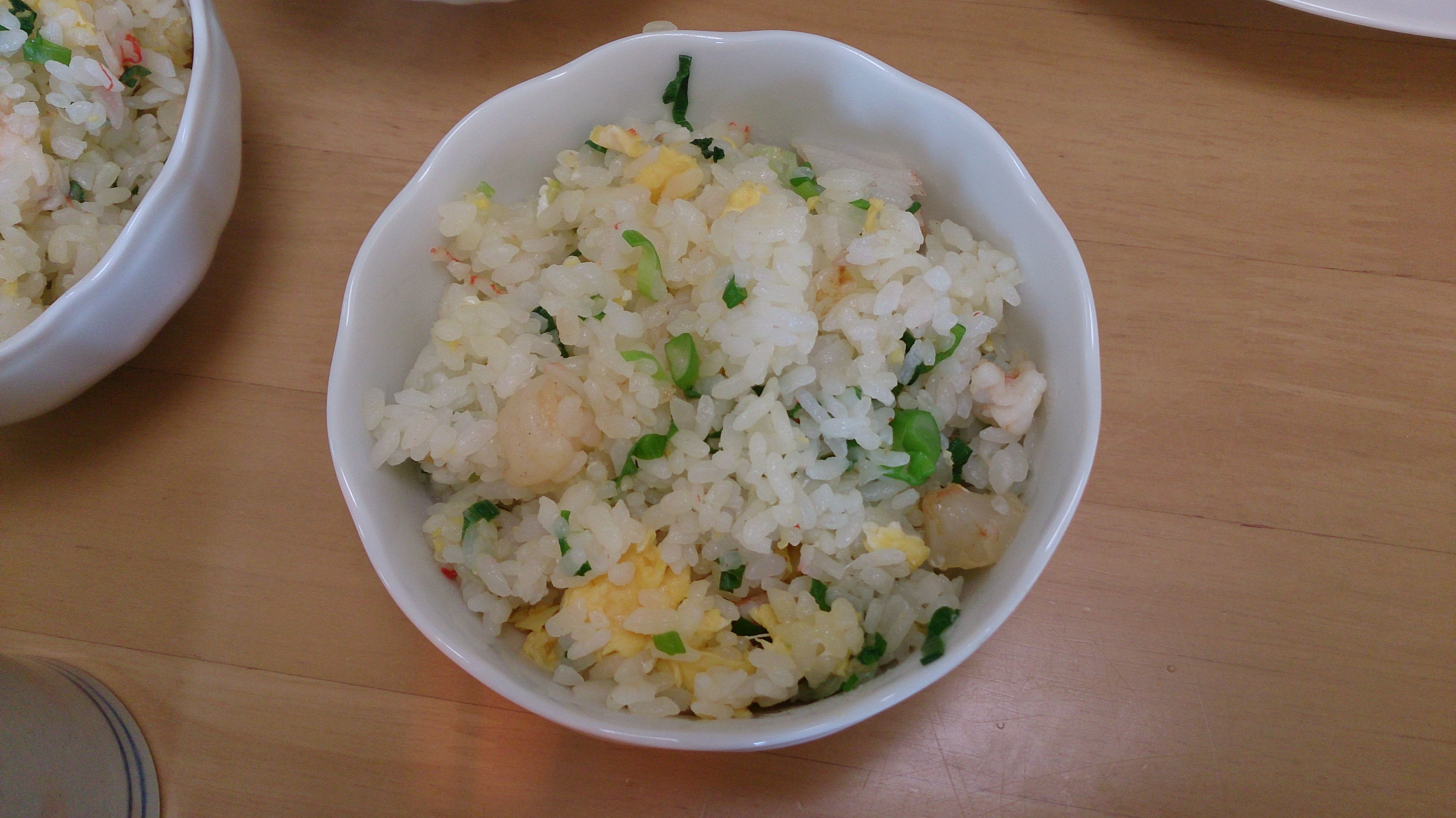 今回は白ご飯の予定だったけど、えび蒸し餃子のエビが余ったので、