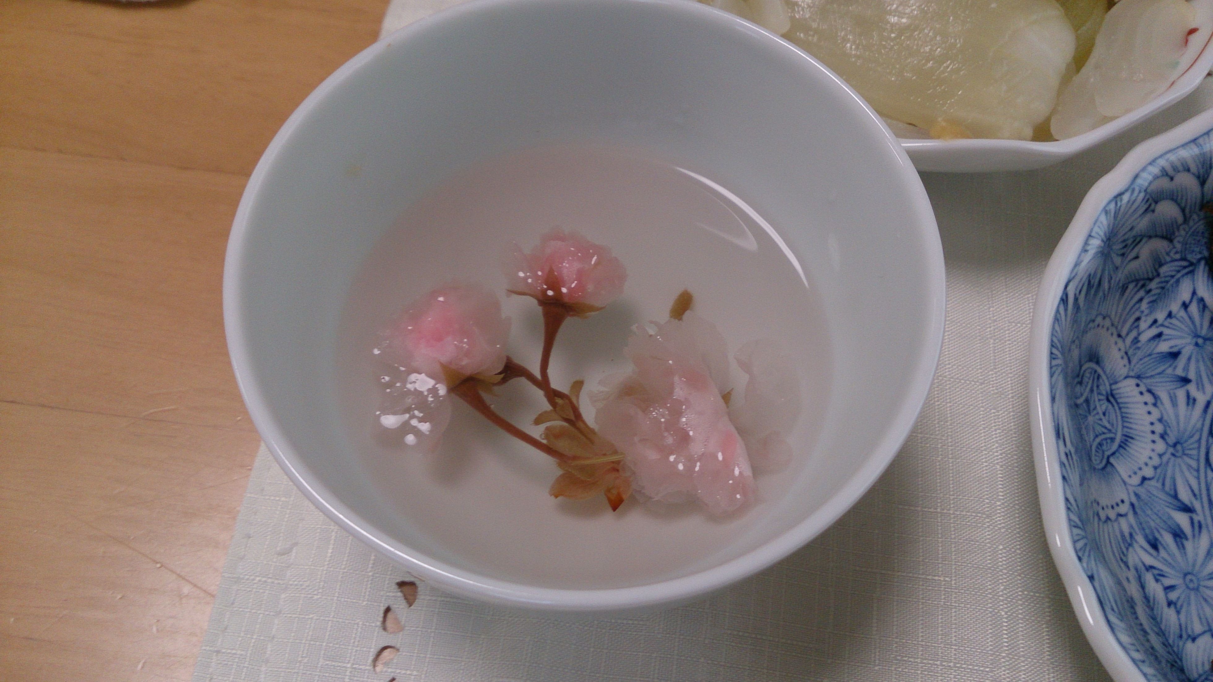 これは、桜の塩漬けにお湯を入れて。桜湯にしました。