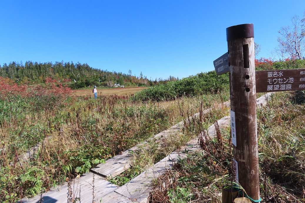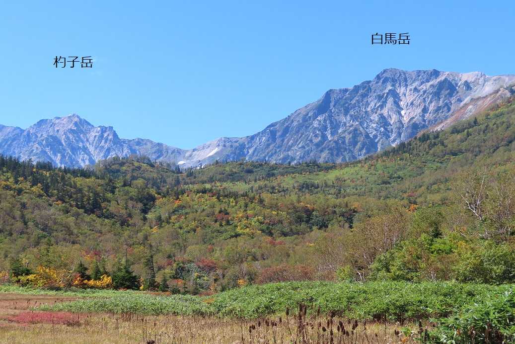 目の前に白馬岳が迫っているけど、しばらく山は見えず湿原を散策します