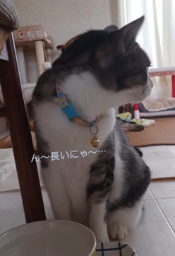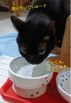 ブログの準備をしていると、やたらと威勢の良い水飲み音が聞こえてきます。1Fでそんな音を立てるのは、この子しかいまへん。ちょっと乾燥していたんでしょうか。白湯よりもぬる~い温度のお水を美味しそうに飲んでいます。え?聞きたいですか?ミッツの水飲み音?では、リクエストにお応えして…まぁまぁ、とらぞーきゅん、そう仰らず(^^:;ではどうぞ…ね、良い飲みっぷりですよねでもそれ以上に、どうしてテーブルの上にのりながら飲んでるんでしょ(≧m≦)
