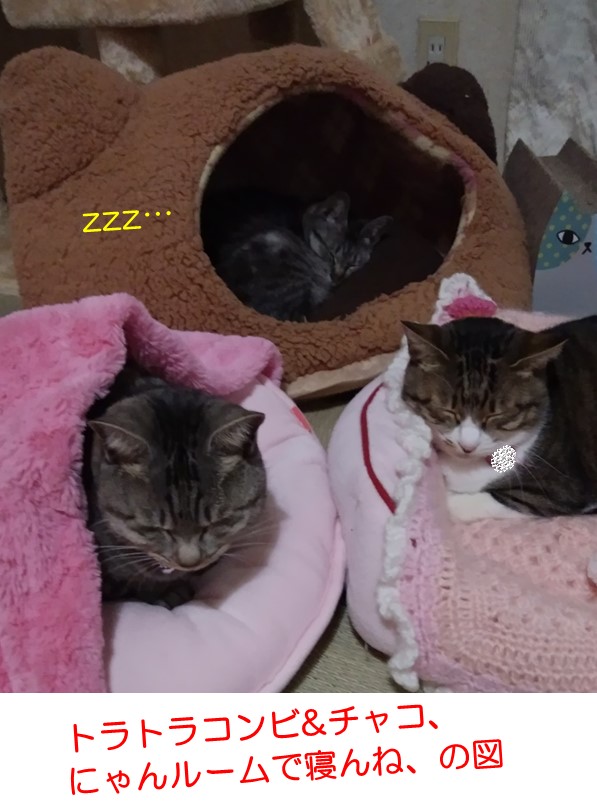 あとの3にゃん、トラトラコンビとチャコは、2Fでしょうね。