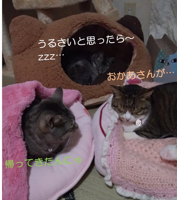 と、ご丁寧に3にゃんバラバラにお寛ぎ~