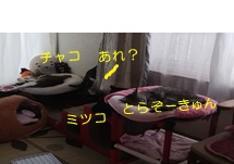 さすがに疲れたのでしょう、トラちゃんはソファーの後ろで…
