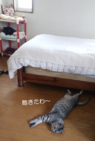 お父さんベッドの下で、へそ天をする始末。