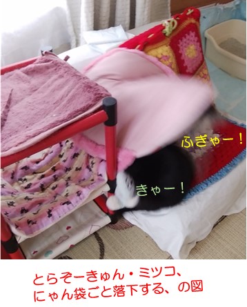 あっという間に、にゃん袋さんごと落下してしまいました。