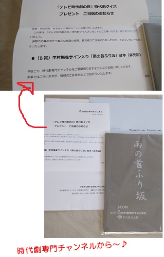 時代劇専門チャンネルのクイズに正解、商品に当たったのでした♪