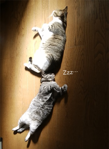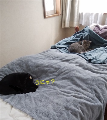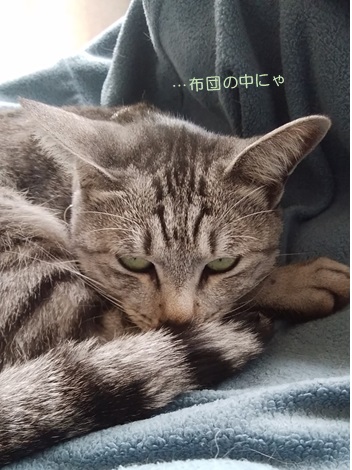 そして、出かけにお布団に潜っていた、トラちゃんとチャコは~