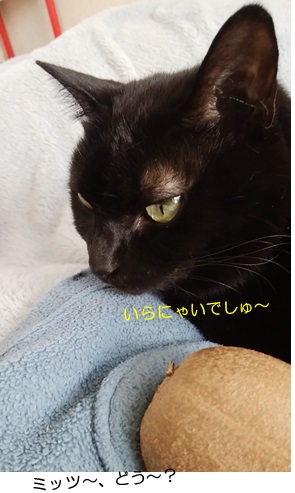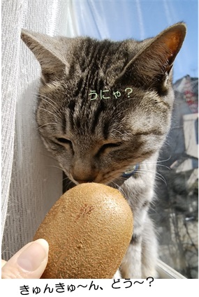 ウトウトしていますが、キウィを近づけると…