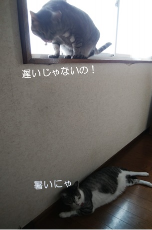 窓が開いているとはいえ、30℃を軽く超えているにゃんルームの