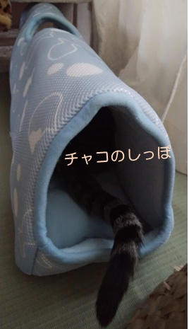 雨模様で少しヒンヤリするせいか、夏用トンネルに潜り込んでいました。