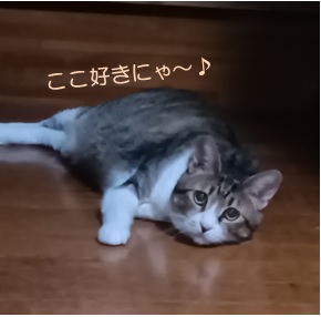 母猫トラちゃんの真似っこで涼んでいるのでした(*´艸`*)