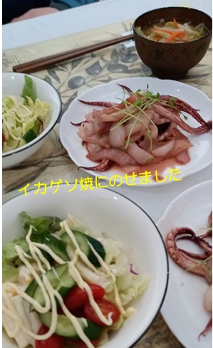 夕飯のトッピングに、再生3度目の豆苗を投入してみました♪