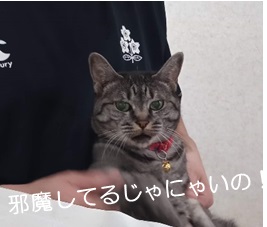 久しぶりにお父さんのお膝で寛ぐ、母猫トラです。