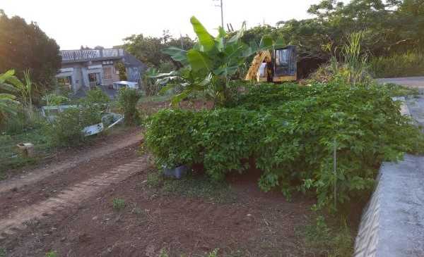 一昨日マンゴー周りの草を刈り取りましたから、今日は、これからパッションフルーツの移植予定地だった場所を、刈り取っておきたいと思います。以前島バナナを植えてあった場所です。去年10月ユンボを入れた際、バナナを撤去しました。