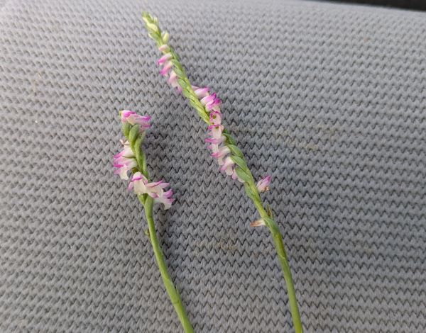 それに、それだけではなく、ナンゴクネジバナの右巻き・左巻きも見つけてしまいました。ご機嫌にならないはずがありません。こちらのネジバナは仲良く一緒に咲いていました。