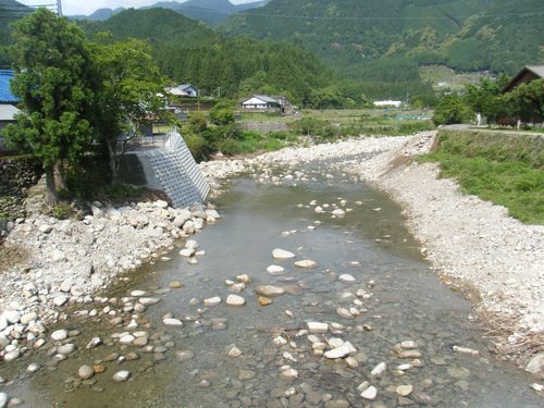 昨年の被災復興の為、現在、河川工事が あちらこちらで行なっております。 ここは、高田公民館前の川です。淵がなくなってしまいました。 旧高田中学校前の淵です。淵が狭くなりました。(なんか画像がへんです・・・・・どうしたんだろう) ここは、トンネル入口道路ですけど、川からの工事が始まりました。 第2自然プールです。 ここの更衣室、トイレは洪水で流されました。 自然プールの淵のところです。道路決壊の工事のため、道になってしまいました。 これでは、泳げません 自然プールの上流です。面影がありません。 お客様へ 今年は、第一・第二自然プールは営業しませんのでご了承下さい。 この写真は、6月1日9時頃の写真ですが、 そうだ、今日は 鮎の解禁日です。 こんな、川の状況でできるのでしょうか? 西川です。いました。釣れているかな 相賀です。ここでも釣っています。 天然鮎が遡上しているみたいです。 釣れたかな 早く河川や道路が復興してもらいたいものです・・・・・・