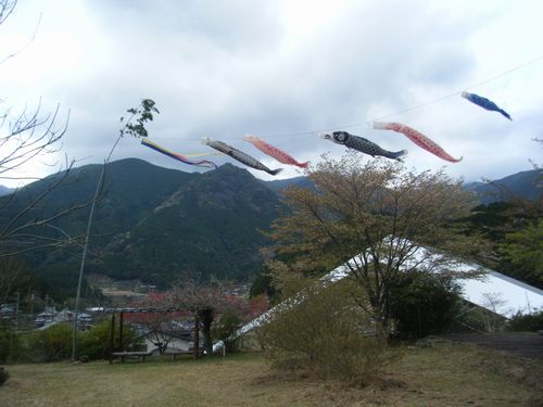 少し 早いですが、 地元の青年団が、上げてくれました 今年は、復興 こいのぼり と名づけましょう