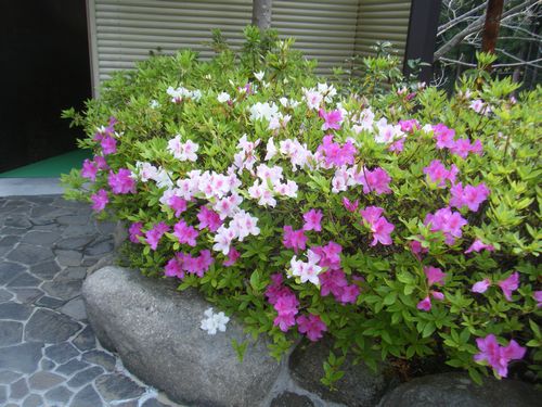 女子 露天風呂に つつじの花が咲いてきました。 これから期待できますね