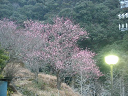 昨日、有志4名で、伊勢路の難所・八鬼山越えを踏破してきました。 ところが、なんと今回は会長が欠席・・・・・・・・ 少人数となりましたが、初の伊勢路なので、皆さん頑張って歩きましょう!! (よって、今回は私がカメラ担当となりました。少々見えづらい画像もあるかもしれませんがあしからず) 朝9時、尾鷲市の熊野古道センターに車を駐車し、まずは駅へ ふりかえると・・・・遠くは雪景色 駅へ向かう途中、こんなところで夫婦岩を発見 本物よりはかなりミニサイズですが・・・・・・・ 列車に乗り、三木里まで移動、いよいよスタートです! 三木里の町並をぬけると、このような芝道が続き 後に、石畳の道になります。 伊勢路は、このような石畳道が多く残っているので、まさしく古道らしいですね 足元にきをつけて、といいながら、橋を渡るのはここだけ これより山中にはいり、だんだん登りとなります。 しばらく歩くと、分岐が 今回は、右側の江戸道コースを行きました。 分岐よりすぐ、まるでゴトビキ岩のような巨岩 これより急な登りが続きます。そんなこと知らずカメラマンはずんずんと先頭切って歩きます・・・おいおい大丈夫なのか しかしこの坂、思っていたより急やで だんだん息があがってきた・・・ 1月というのに汗をかき、かなり息があがってきたころ、 十五郎茶屋跡 だそうです。 ここからの景色 ちょっと枝が邪魔ですが、いい景色 写真右下の集落から登ってきたのです。 しばし休憩して、いざ出発 と思ったら、まだまだ登りか・・・・・・・ 山越えなのでしかたないですが ここを登りきると、勾配もゆるやかになってきます。 この日はこの当りに鹿に遭遇 一瞬で横切った為カメラが間に合わず・・・・残念 皆さん、頑張っております。昼食までもう少し!!! 頂上近くの、さくらの森広場に到着しました。 ここで昼食 実はここからの眺めは絶景!!!!! 続きは次回で