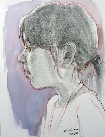 「少女」330×240mm.木炭.水彩.2017/5