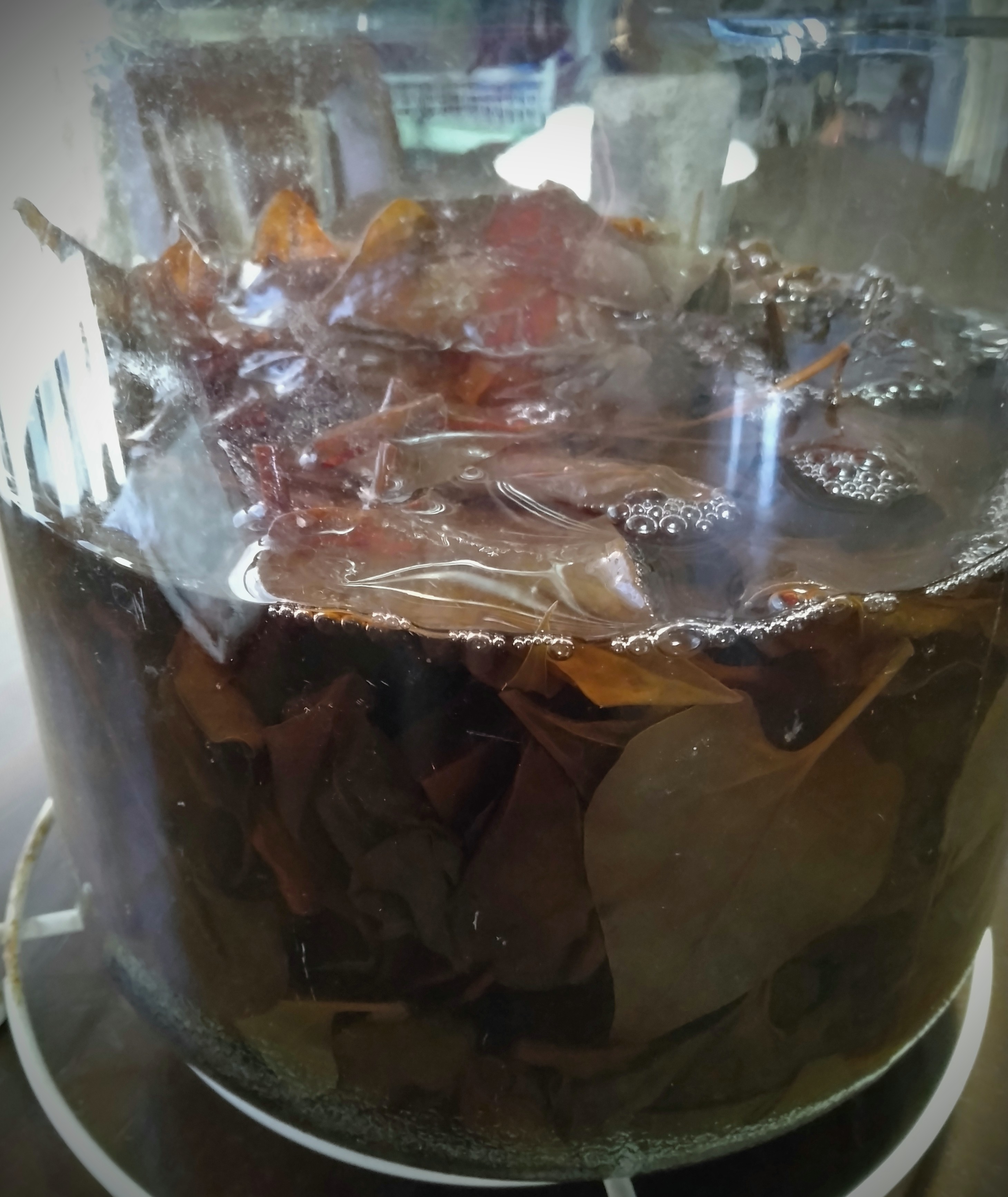 作り方はアロエ化粧水の素と同じで、ドクダミの葉適量にホワイトリカーをひたひた位に注ぐだけ。