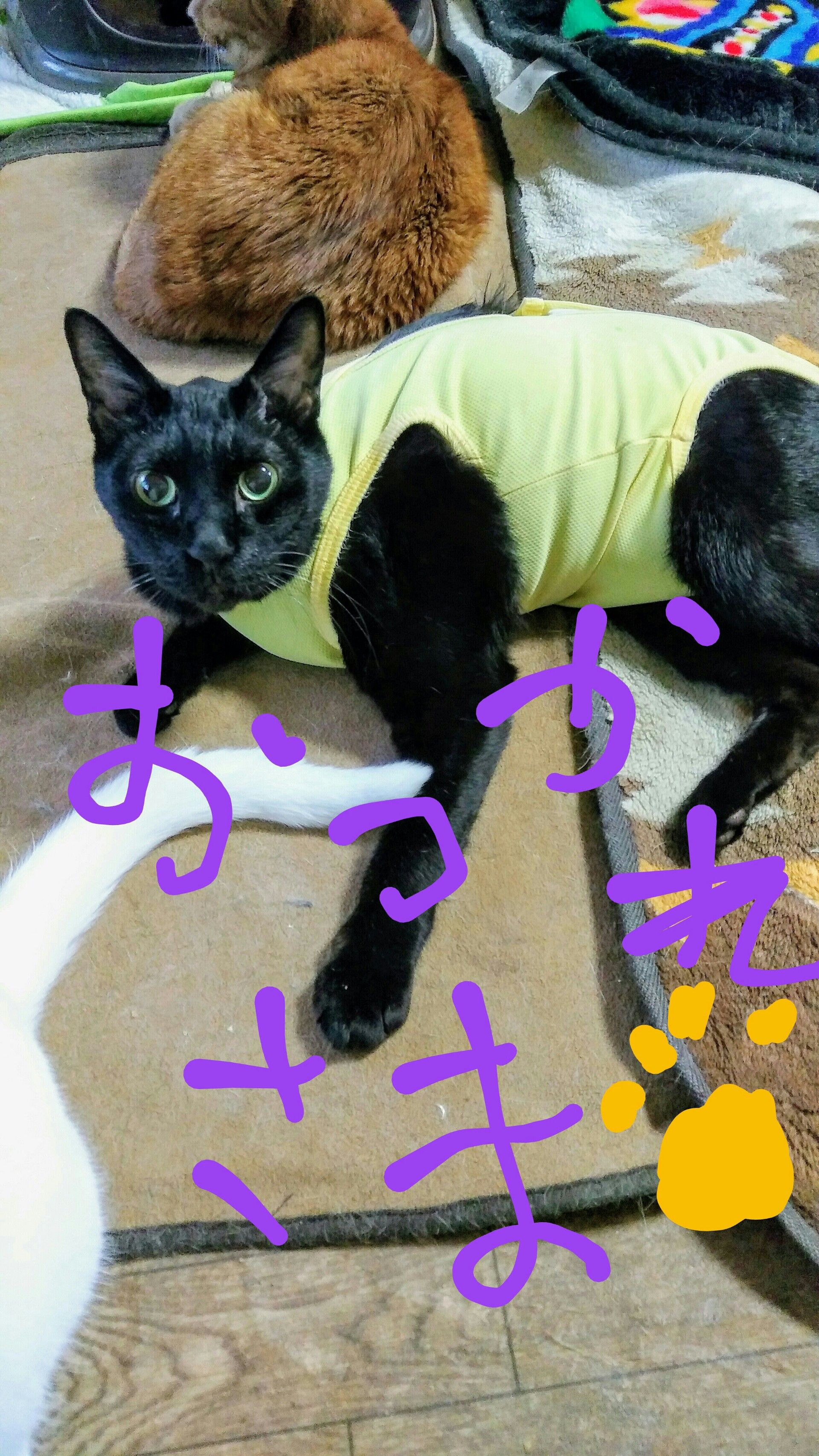 まいくろとつぐみは甲状腺機能亢進症ですが、つぐみは薬疹が出て薬を断念。 まいくろはメルカゾールを飲んでいます。 しかし、お腹がカイカイになり、薬疹か?と思ったら違ってアレルギーみたいでステロイドを使ったのだけど舐めたおして カラーをつかってもカラーを利用して掻いてひどくなり… 服を着ることになりました😩 まだまだしばらく着ることになりそうなので、て言うか脱げる日は来るのか😱 というわけで、もう一着注文することにしました。 今度は赤にしてみようと思います。 黒猫なので何色でもよく似合います😌 世話人は先日spitzのライブに言って幸せな余韻で今週は乗りきろうと思います。 職場の仕事もしないのに上司の目に届かないところでパワハラをしていたクズ野郎がようやく他の店舗に飛ばされることになり 職場にも平和が戻ってくるかとしれません。 お母さん良かったね! 可愛いもちおより❤