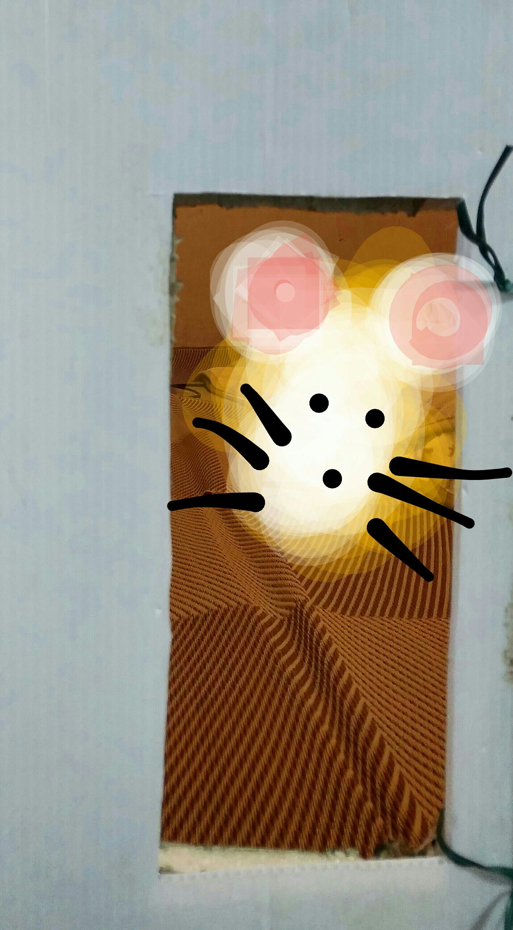我が家のふすまはもうボロボロです。 最近はもちくんが穴を開けてどんどん広げていっているのでとりあえず応急措置でもちくんが通れる程度に四角くくりぬいてみました😁 通れる子しか通れない😁
