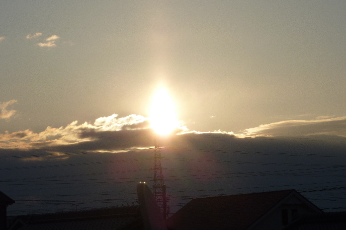 初日の出、、、雲の合間からですが、何とか見られました。(これって、初日の出、とは言わないのでしょうか?)夕べ、寝たのは3時前。4時間少ししかねていません。 あけまして おめでとう ございます。今年も宜しくお願いします。 やっと写真が載せられましたが、大きすぎましたね!