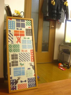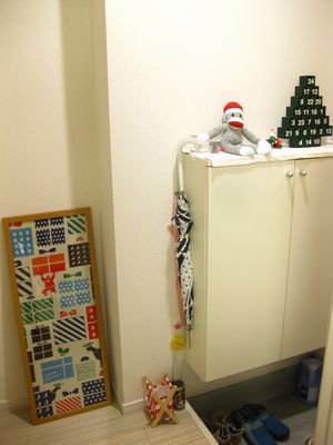 すっかり玄関はクリスマス仕様です。右のアドベントカレンダーは無印良品で去年ゲット。中身のアメやマシュマロは全く入ってないのよ。お気に入りなので毎年登場予定です フレームは楽天。リアル店舗より超お得。 ←お気に入り手ぬぐい。こちらも楽天ポチ。 ←そして最近ポチしたのが干支の手ぬぐい。12年に1度しか使わないからどうかと思ったんだけど、私達ヘビどし夫婦のもとに来年ヘビどしベビが増える予定なので記念として・・・と思ってポチッ。届くの楽しみぃ~