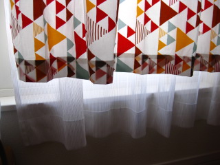 リビングのカーテンの丈・・・つんつるてんデス。この丈なら合うはずだッ! と計りもせずに購入しちゃうとこんなことに。なにごとも「ご利用は計画的に」ですなぁ。なんとか長くならないかと、2重になってる箇所を下げて下には三角にカットしたフェルトを縫い付けました。なんとか長くなったわぁ~(まだ寸足らずじゃんって言わないでぇ) お雛様の手ぬぐい、楽天にも盛りだくさんッ
