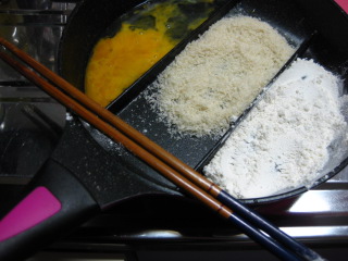 お弁当作りに便利ッ愛用中のセンターエッグパン違った使い方もしております~カツを作る時の小麦粉・卵・パン粉入れに。もっと違った使い方も模索中ッ。