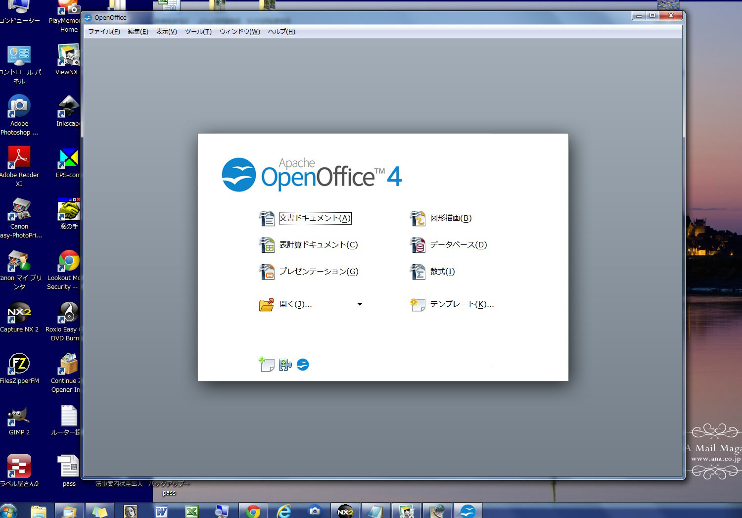 MSのオフィスは入れてあるけど、急遽パワーポイントを使うことになった。ネットでフリーソフトでもあるかと探してみたら、なんとすごい、こんなのがあった。Apache OpenOffice という、「Microsoft Office」互換のフリーのオフィス統合ソフト!窓の杜のここで見つけた。何かすごいね~、これがあったらほとんど高いお金出して買わなくっていいみたい。早速インストールして、普通に使えてる。いやはや、便利。ちょっと感動。