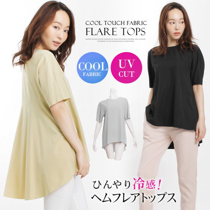 シルエットが、好み! 【メール便送料無料★26日17:59まで】【TV通販で大人気!】ひんやり冷感♪UVカット!紫外線カット!ヘムフレアトップス/フィッシュテールシルエットで体型カバーにも◎大きいサイズ<S・M・L・LLサイズ有り>[22292]【メール便可】【4800円以上送料無料】
