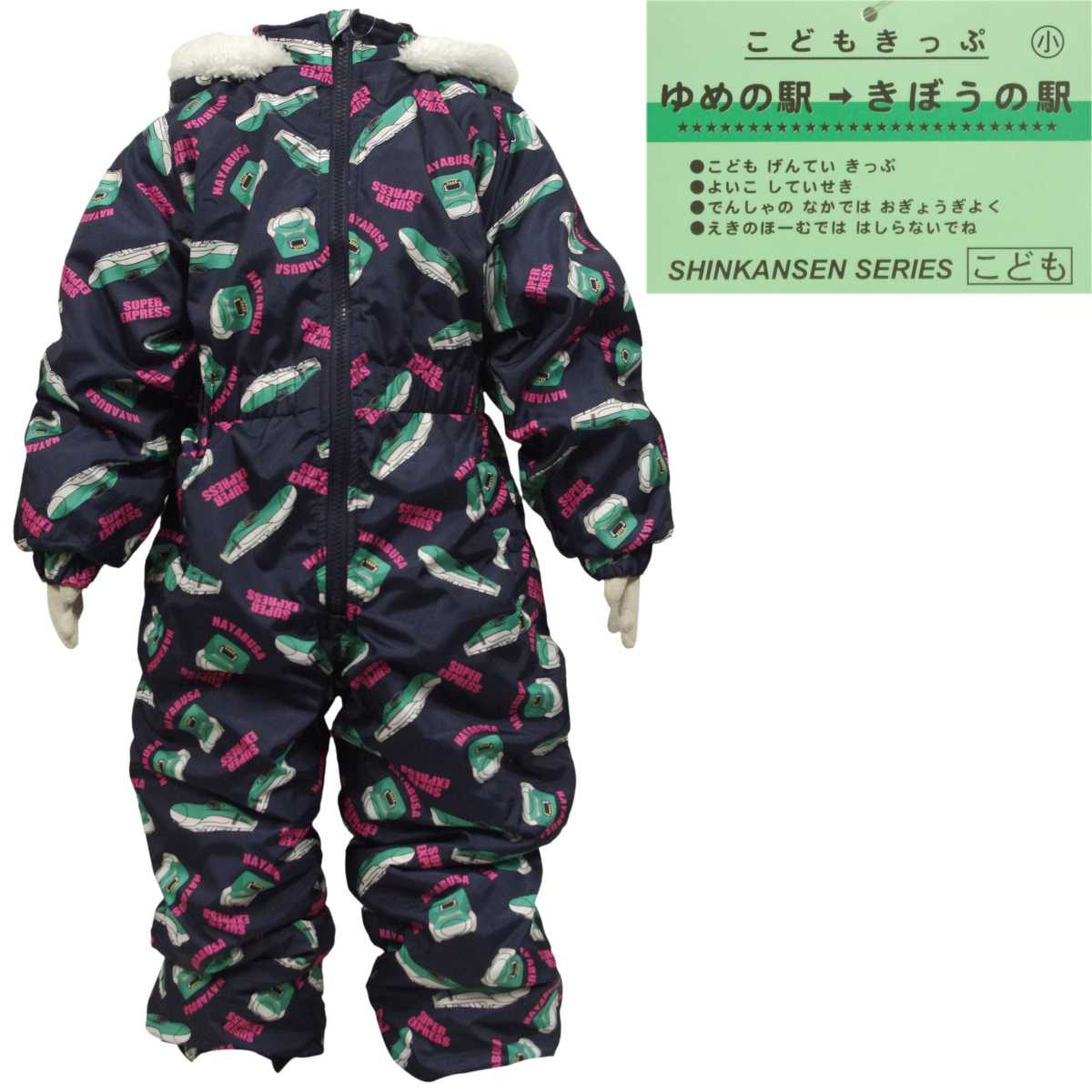 冬の必需品。 新幹線柄は子供ウケ間違いなし。 05P03Dec16男の子キッズ新幹線柄中綿入りジャンプスーツ (ネイビー 100cm 110cm 120cm 130cm) ボーイズ キッズ スキーウェア 全2色