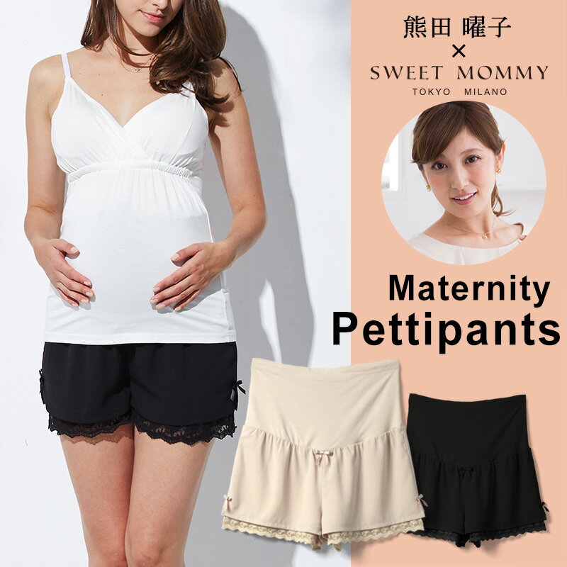 スカートには必須アイテム。 産前産後着られて便利! 【メール便】【あす楽】<br>熊田曜子さんコラボ<br>マタニティペチパンツ<br>ジョーゼット素材で大人可愛いインナーパンツ<br>《マタニティ/マタニティウェア/ペチパンツ/ショートパンツ/ペチコート/ルームウェア/ブライダル》[M便 6/6]