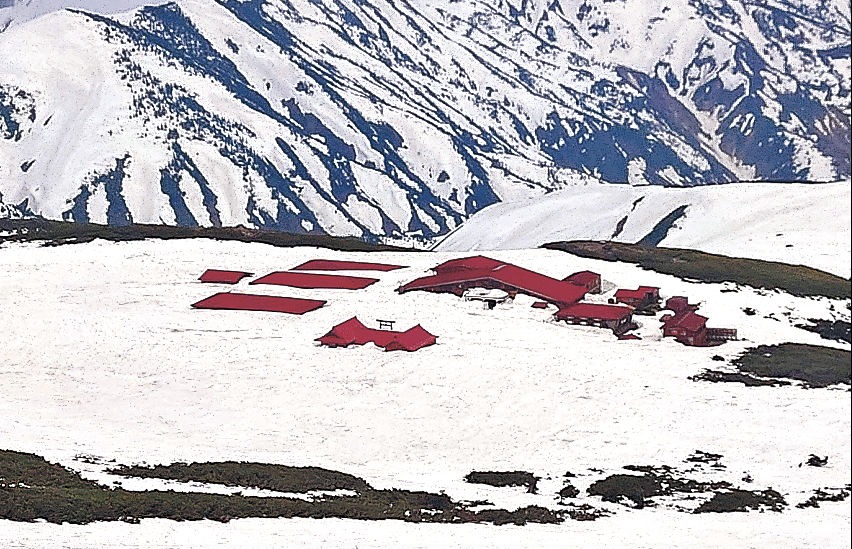白山神社の社殿の屋根がやっと雪解けしたようで